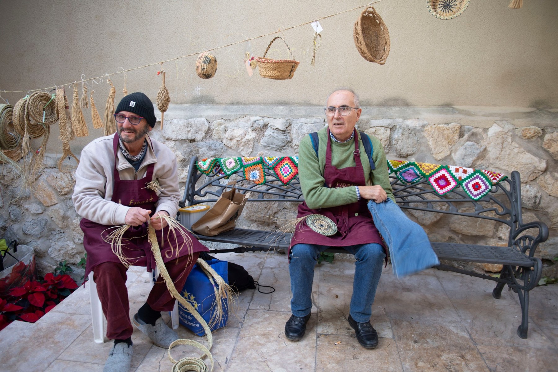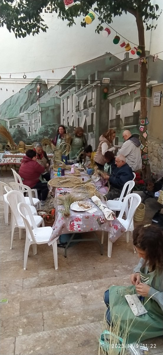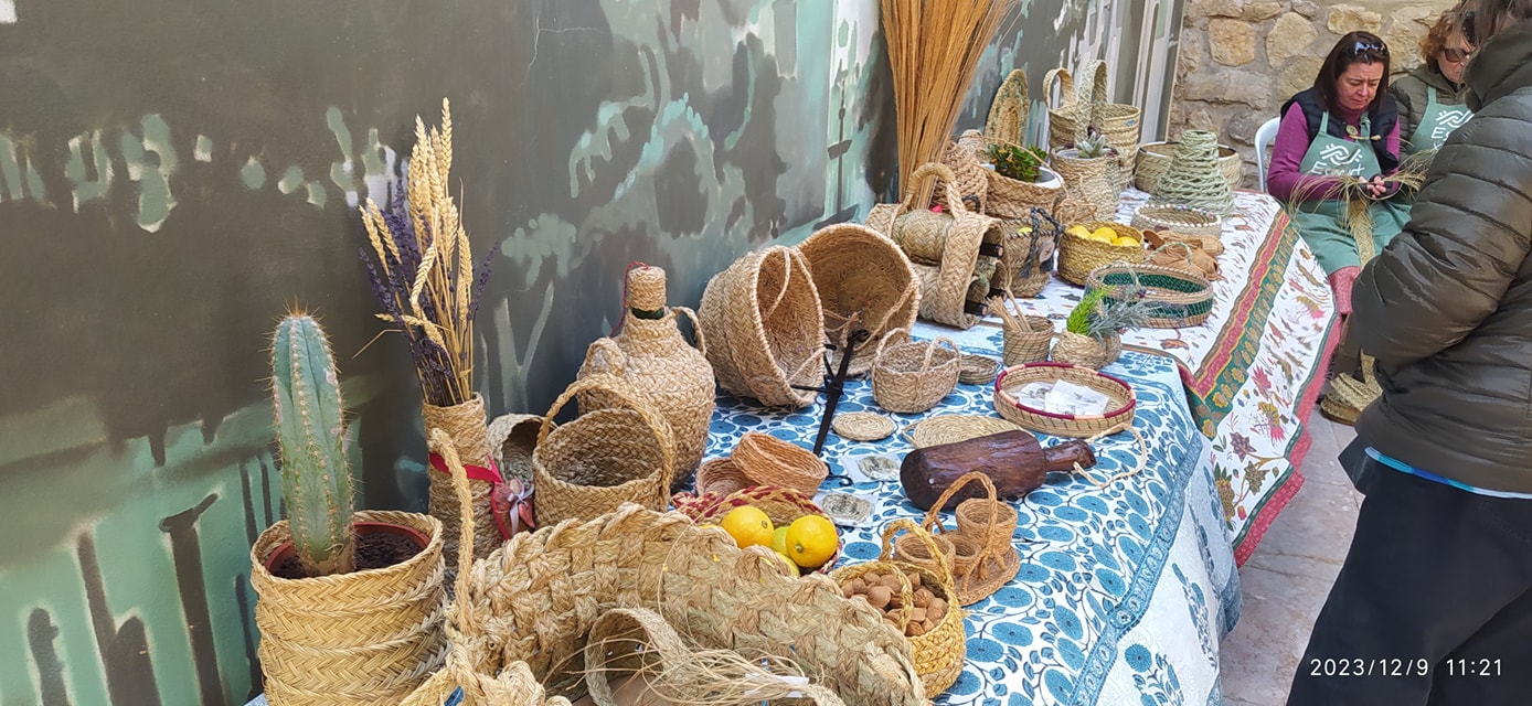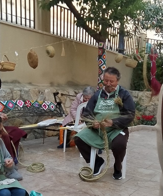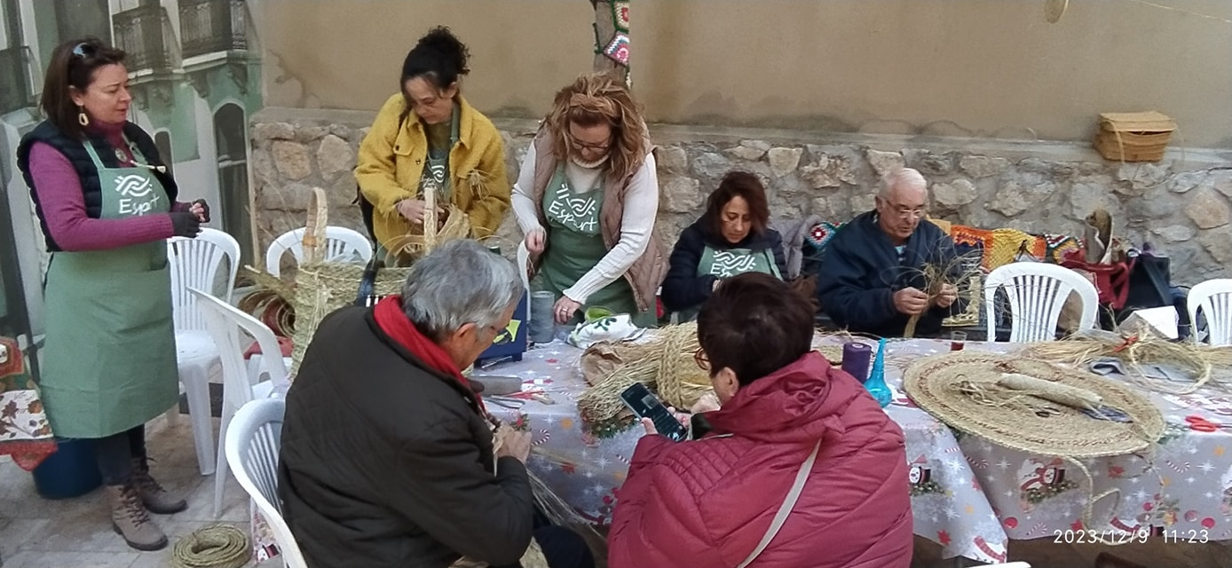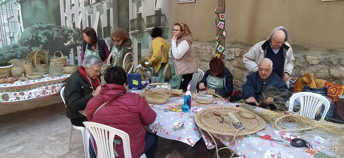El sábado día 9 de diciembre de 2023, el grupo de esparto del Centro Excursionista y otros esparteros y esparteras de poblaciones vecinas han estado presentes haciendo demostraciones del trabajo con este material, el esparto, que tanto abunda a nuestro entorno. Hay que decir que han elaborado cositas como llaveros, pequeños ornamentos que darán a la sociedad protectora de animales 7&7 de Jijona. Una muy buena tarea.