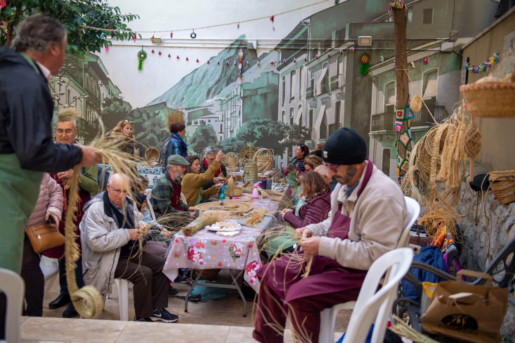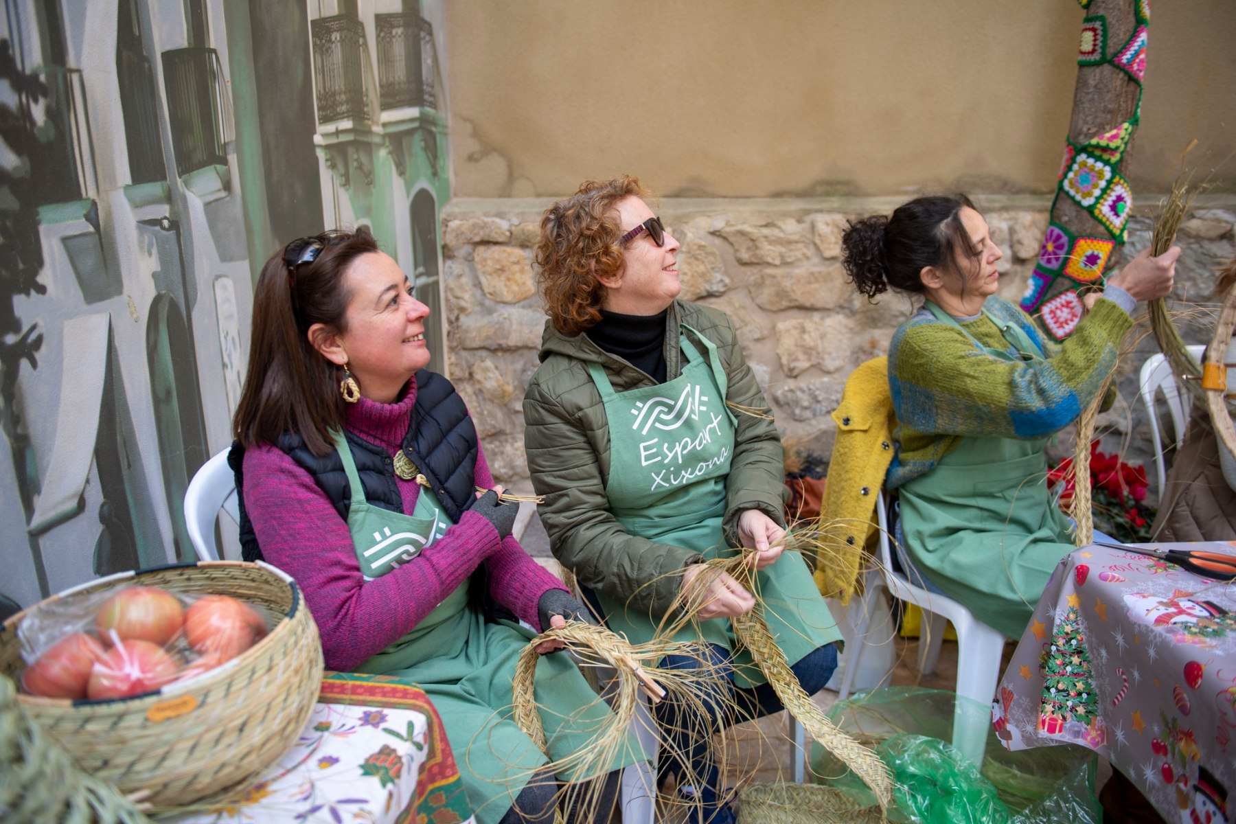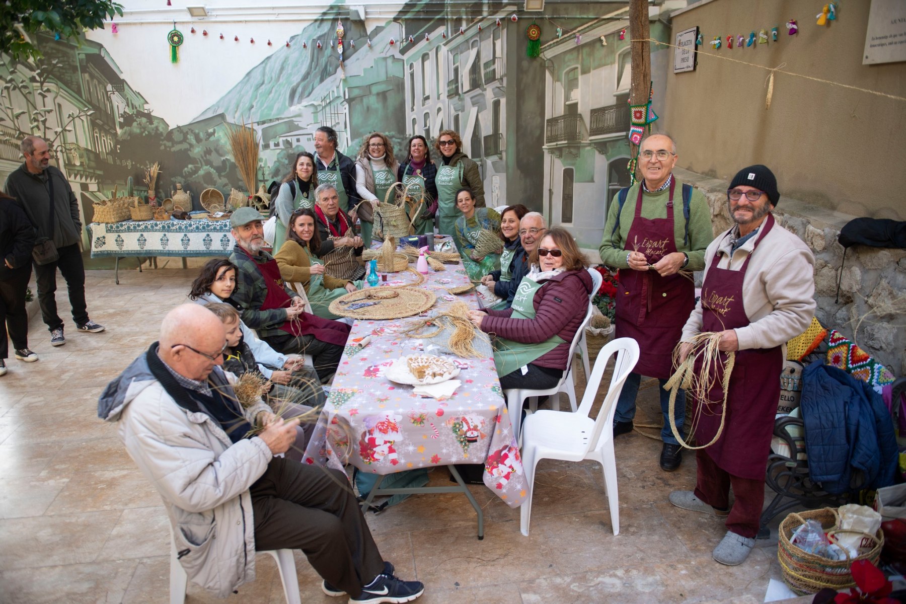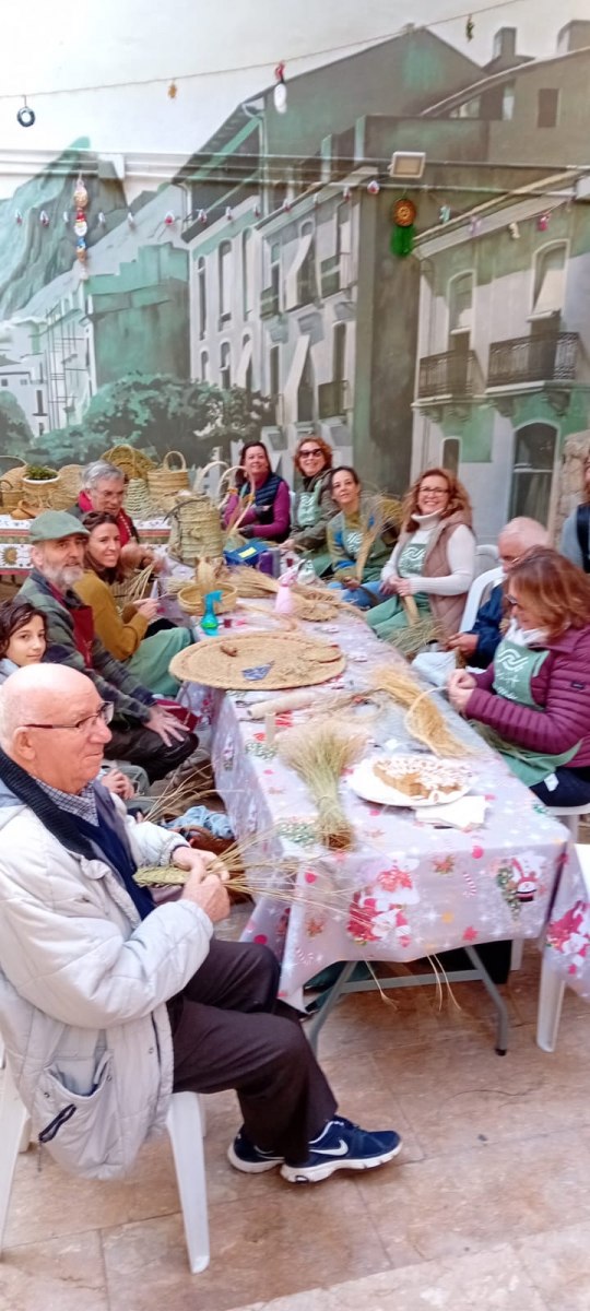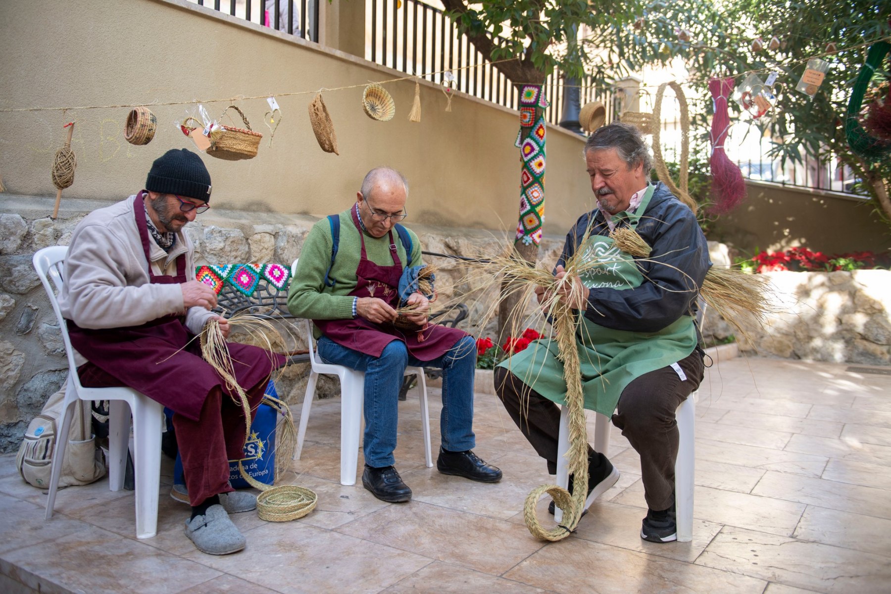 El sábado día 9 de diciembre de 2023, el grupo de esparto del Centro Excursionista y otros esparteros y esparteras de poblaciones vecinas han estado presentes haciendo demostraciones del trabajo con este material, el esparto, que tanto abunda a nuestro entorno. Hay que decir que han elaborado cositas como llaveros, pequeños ornamentos que darán a la sociedad protectora de animales 7&7 de Jijona. Una muy buena tarea.